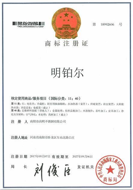明鉑爾®國家商標(biāo)知識產(chǎn)權(quán)榮譽(yù)證