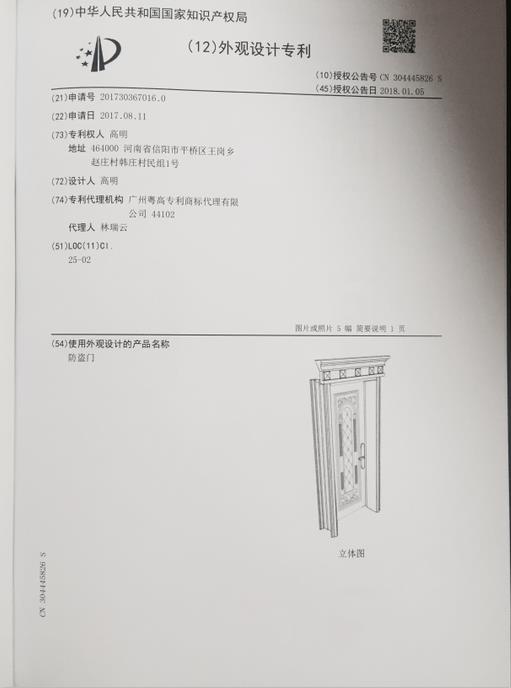 祝賀明鉑爾?國家產(chǎn)權(quán)證書