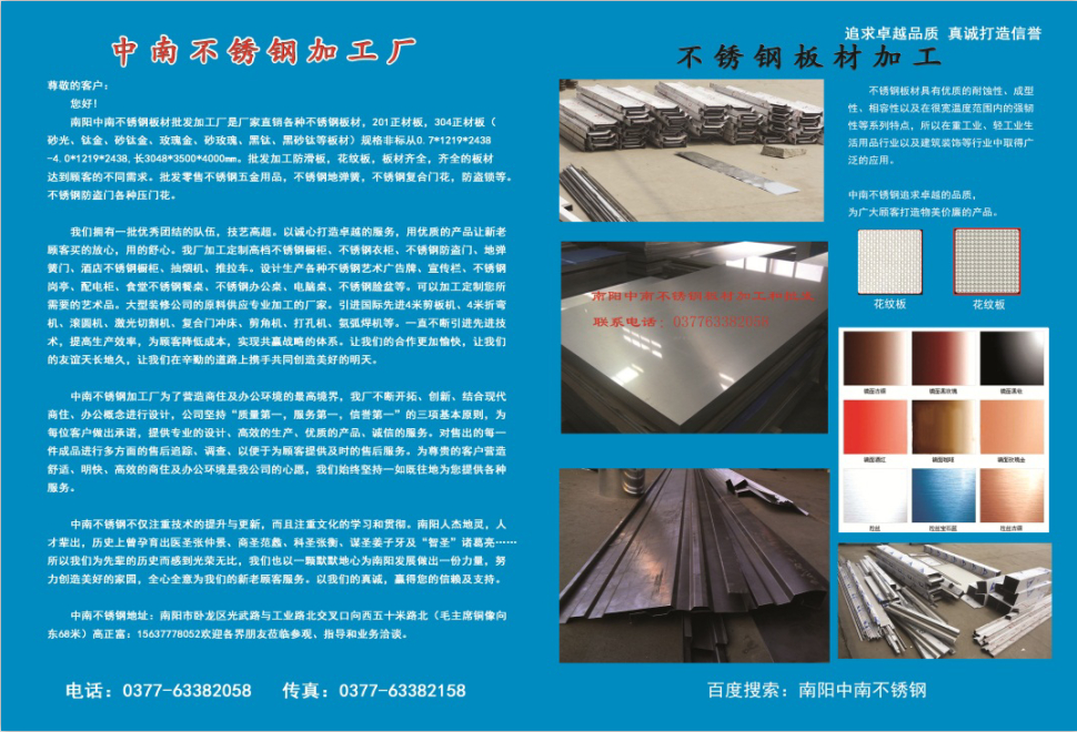 南陽中南不銹鋼板材批發(fā)加工廠