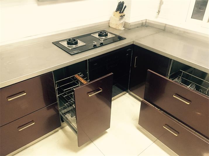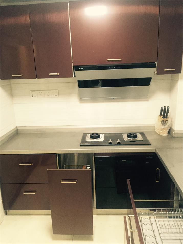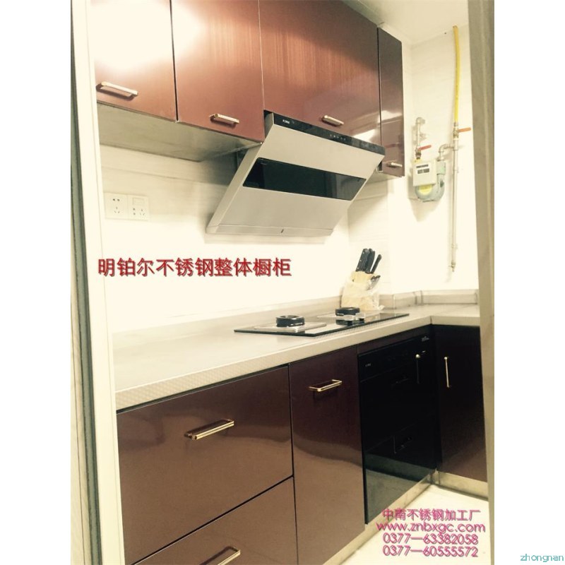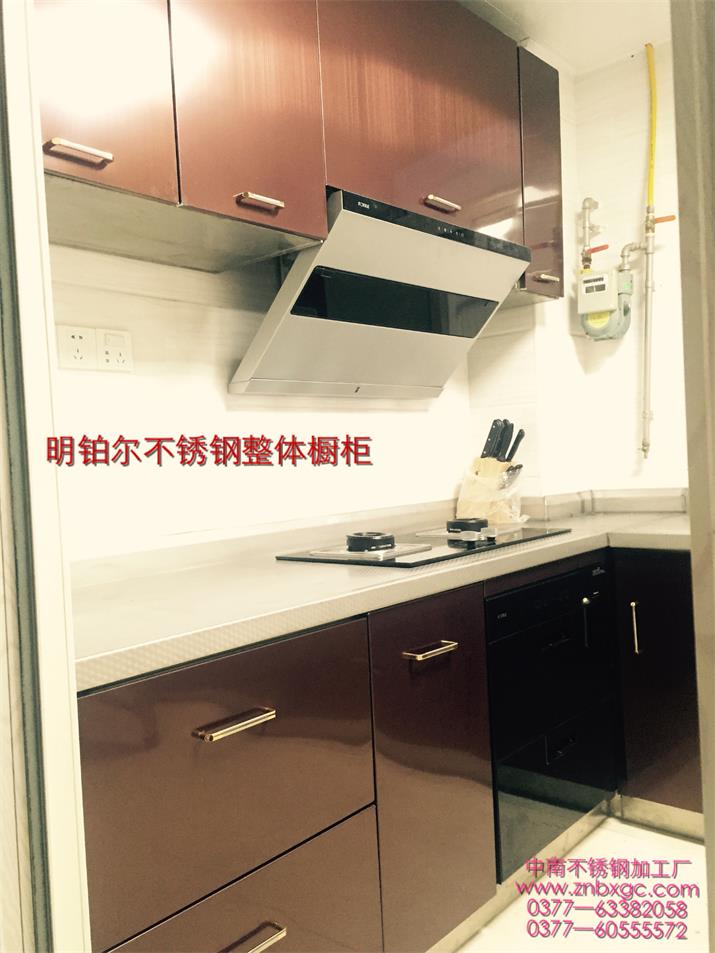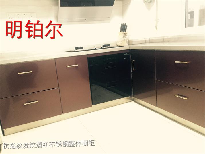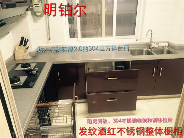 此套酒紅不銹鋼整體櫥柜,臺(tái)面板采用實(shí)厚2毫米304材質(zhì)。可以使用100年的不銹鋼整體櫥柜。