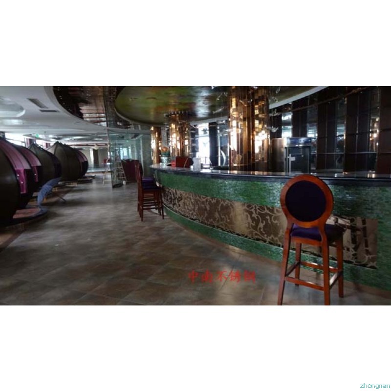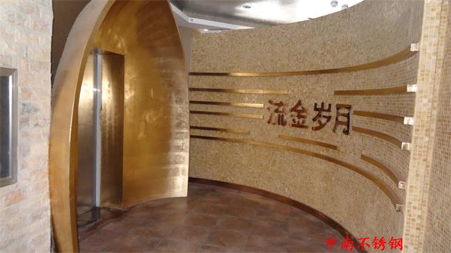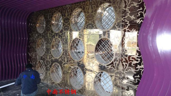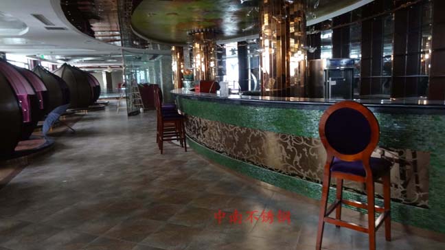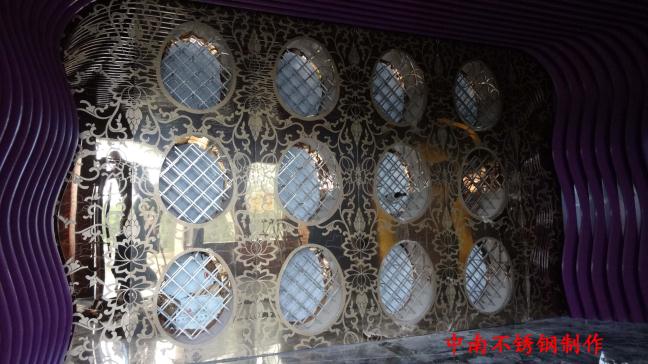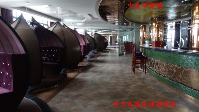 2012年,明鉑爾與荷花廣場流金歲月西餐廳,與北京星亞澤園裝飾工程公司合作。制作玫瑰加荷花蝕刻酒柜,不銹鋼藝術(shù)造型。