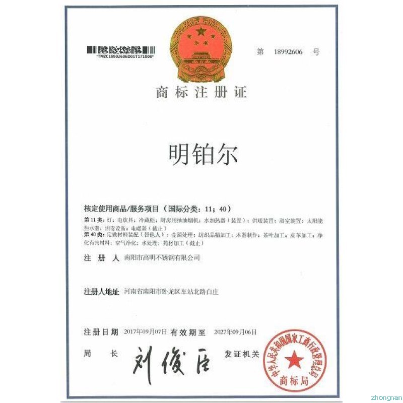 明鉑爾?國家商標知識產(chǎn)權(quán)榮譽證