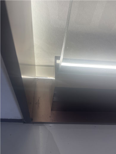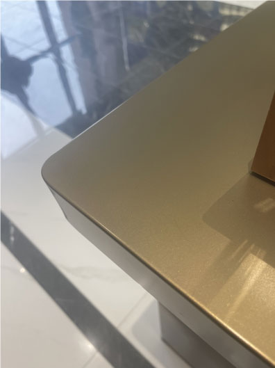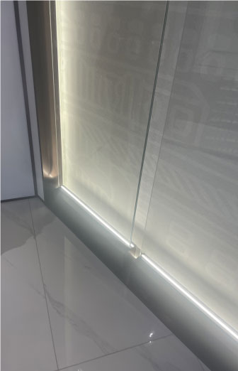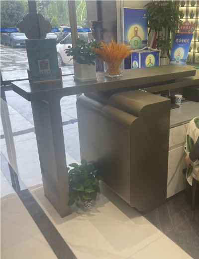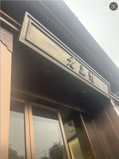 大門整體使用不銹鋼材質(zhì),八個不銹鋼字耐磨耐曬耐腐蝕,地拉彈簧門上放棄使用傳統(tǒng)拉手,改用定制云紋拉手,使得大門的質(zhì)感更上一層樓。