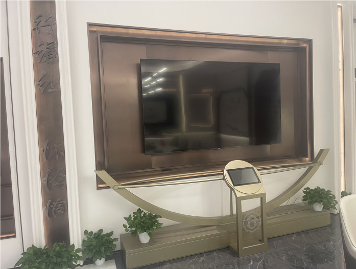 習(xí)酒文化電子展廳的不銹鋼展臺和不銹鋼背景墻