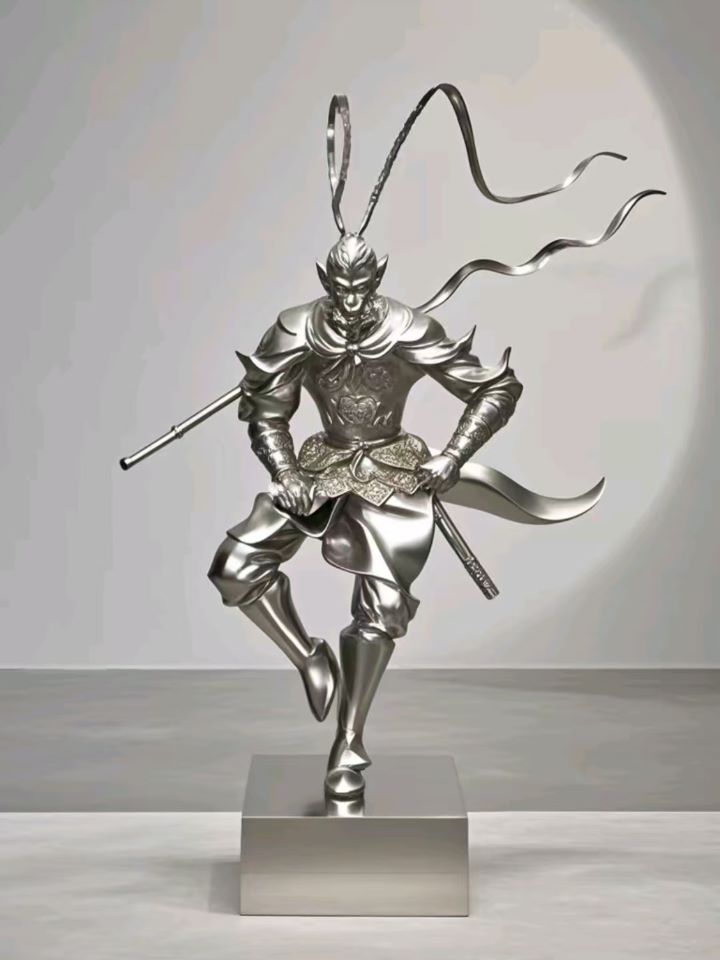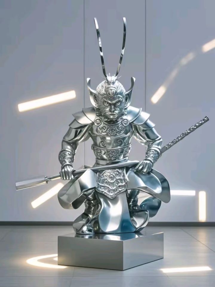 該雕塑造型上,多以《西游記》中孫悟空的經(jīng)典形象為藍(lán)本,如齊天大圣、行者等形象,部分還會結(jié)合現(xiàn)代藝術(shù)風(fēng)格