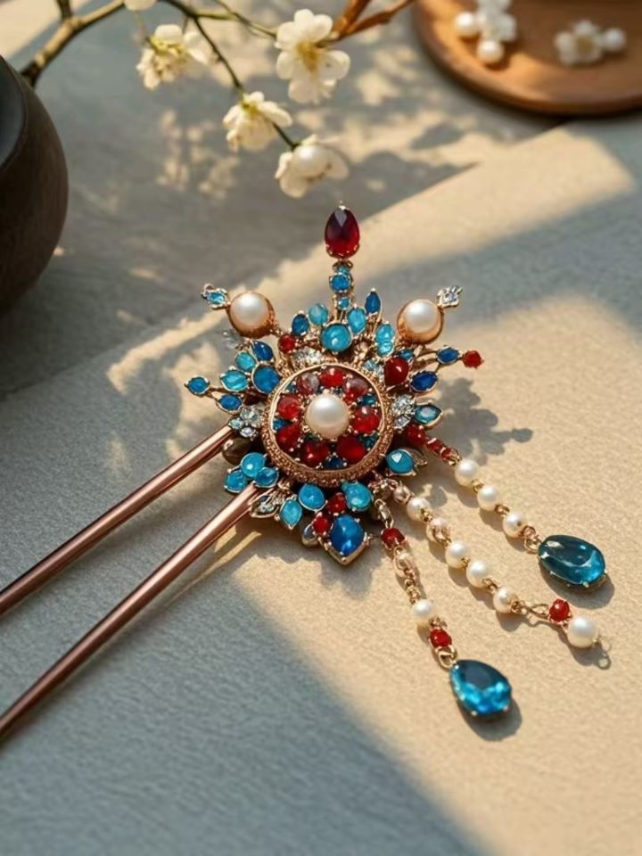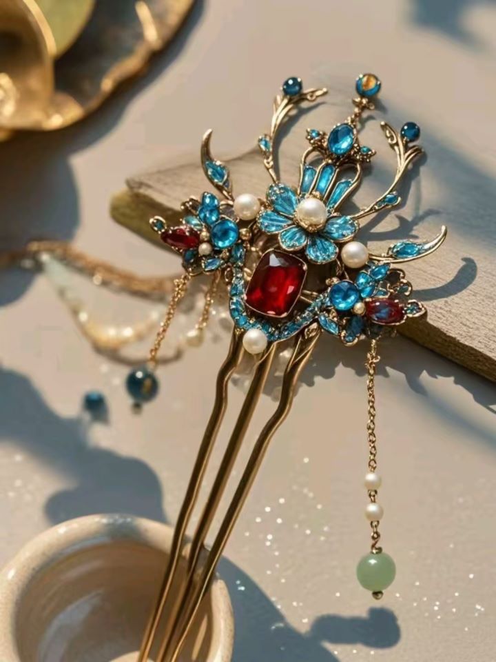 這款系列不銹鋼古銅色古風(fēng)簪子,將現(xiàn)代材質(zhì)與古典韻味完美融合。簪身呈古銅色澤,仿若歲月沉淀的痕跡,不銹鋼的質(zhì)地又賦予其堅(jiān)韌與耐用。簪頭精心雕琢,或有紅寶石的明艷熾熱,似燃燒的晚霞,嬌艷欲滴;或鑲嵌藍(lán)寶石,如深邃夜空的星子,幽藍(lán)深邃,散發(fā)神秘冷艷之光;又或以珍珠點(diǎn)綴,圓潤(rùn)潔白的珍珠恰似月光凝
